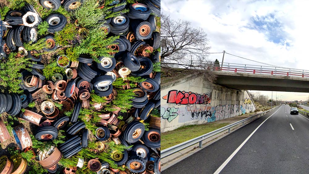 Para ello, hemos creado un jardín que utiliza plantas sintéticas basadas en neumático al final de su vida útil, con una última capa de nanotecnología fotocatalítica, lo que le permite a la vez emular la naturaleza y ser completamente respetuoso con el medio ambiente.