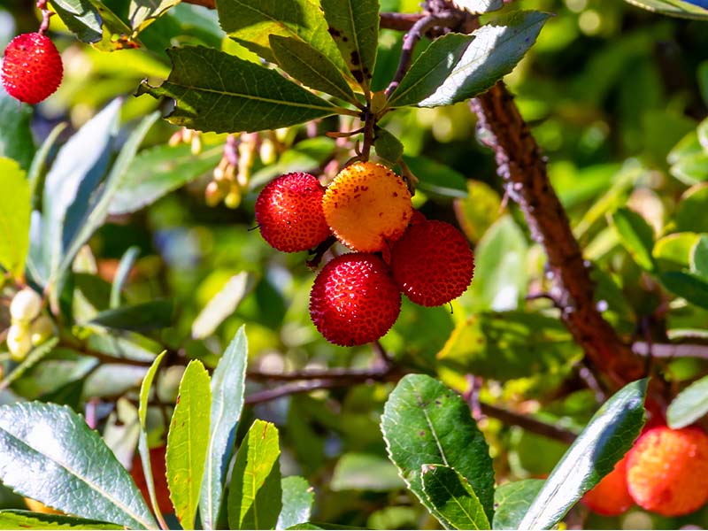 El madroño es una especie que se destaca por sus hojas verdes brillantes.